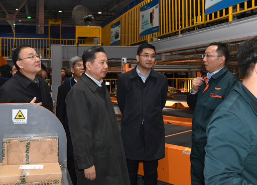 11月9日晚,交通運(yùn)輸部部長(zhǎng)李小鵬在國(guó)家郵政局局長(zhǎng)馬軍勝的陪同下,來(lái)到北京郵政速遞處理中心察看了郵件處理場(chǎng)地,并召開座談會(huì),了解郵政快遞業(yè)“雙11”旺季生產(chǎn)運(yùn)行和服務(wù)保障情況。李小鵬對(duì)北京郵政速遞處理中心的新設(shè)備、新工藝、新流程給予肯定,向奮戰(zhàn)在一線的廣大郵政員工表示慰問(wèn)。他要求郵政快遞業(yè)切實(shí)做好今年“雙11”旺季服務(wù)保障工作,為服務(wù)國(guó)民經(jīng)濟(jì)發(fā)展、滿足人民群眾日益增長(zhǎng)的美好生活需要,不斷推動(dòng)郵政快遞行業(yè)高質(zhì)量發(fā)展作出新的更大貢獻(xiàn)。中國(guó)郵政集團(tuán)公司總經(jīng)理張金良、副總經(jīng)理李雄等參加調(diào)研和座談。