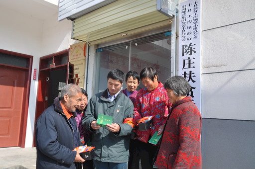 11月9日,江蘇省徐州市豐縣郵政分公司啟動了黨建扶貧項目,并組織了以趙本增為“領頭雁”的黨員志愿者隊伍深入到與豐縣分公司簽訂扶貧合作協(xié)議的陳莊村進行走訪調研,了解貧困人口比重、農作物品種、貧困戶致貧原因等,并將趙本增“勞模工作室”作為黨建扶貧工作室與該村黨支部緊密聯(lián)系,確保“黨建扶智、精準扶貧”政策落地。圖為黨員志愿者在調研的同時向貧困戶介紹“扶貧會員證”的用法。 □陳海彬 攝影報道
