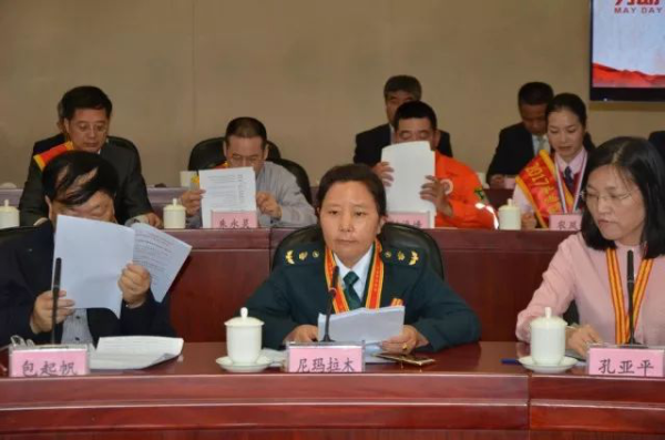 尼瑪拉木作為郵政系統代表在座談會上發言