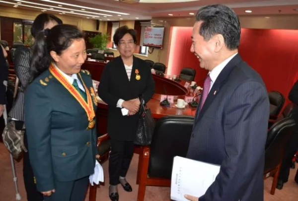 交通運輸部黨組書記楊傳堂與尼瑪拉木親切握手