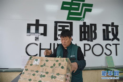 在琿春市春化鎮,金仁哲在搬運郵件。