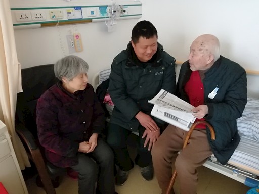 湖北省十堰市郵政分公司深入開展“比服務比質量比貢獻,爭創十星投遞員”活動,充分調動投遞員爭先創優的積極性和主動性,使投遞服務質量大幅提升。圖為三堰投遞站投遞員鄧大亮(中)為住院用戶送去當日報紙?!跬觚堷P 攝影報道