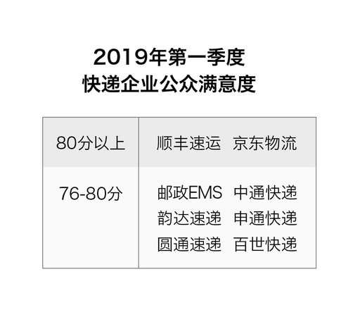 圖表3:2019年第一季度快遞企業(yè)公眾滿(mǎn)意度