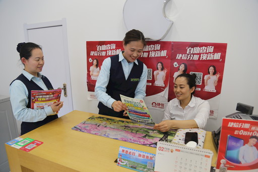 圖為松原市分公司員工上門推介郵儲銀行ETC卡。 □韓旭 郭慧婷 攝影報道
