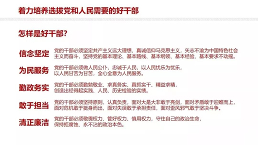 習(xí)近平總書記強(qiáng)調(diào),好干部的標(biāo)準(zhǔn),大的方面說,就是德才兼?zhèn)洹M瑫r(shí),好干部的標(biāo)準(zhǔn)又是具體的、歷史的。不同歷史時(shí)期,對(duì)干部德才的具體要求有所不同。