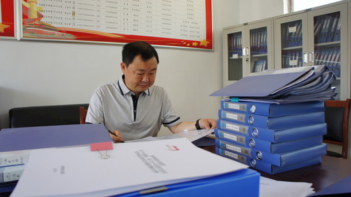 李東在整理扶貧資料。