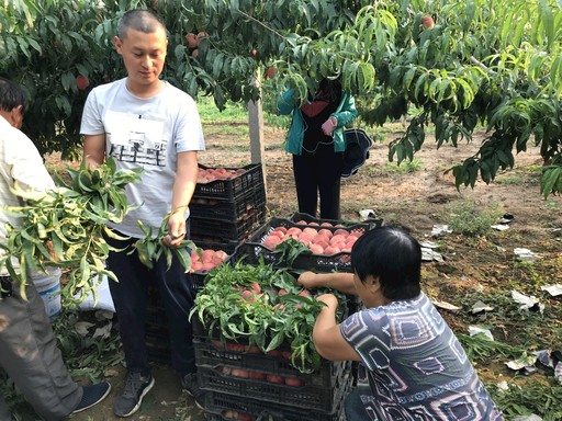 眼看著剛摘下的熟透的桃子,老鄉們的臉上掛滿了笑容?!吨袊教靾蟆酚浾?劉巖 攝