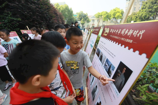 “同學(xué)們,你們知道國歌《義勇軍進(jìn)行曲》的詞作者和曲作者是誰嗎?”“田漢,聶耳!”6月28日,由江蘇省南京市郵政分公司舉辦的“壯麗七十年 闊步新時(shí)代”慶祝新中國成立70周年全國集郵文化活動(南京)走進(jìn)雨花臺區(qū)共青團(tuán)路小學(xué),在學(xué)生們異口同聲的回答中,一場別開生面的愛國主義郵展拉開帷幕。