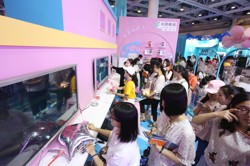 少男少女對(duì)郵政展區(qū)情有獨(dú)鐘。