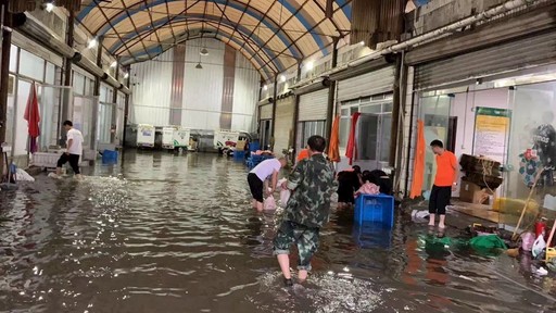山東濟南:濟南市郵政寄遞事業(yè)部歷城區(qū)工業(yè)北路營業(yè)部受災(zāi)嚴(yán)重,員工及時轉(zhuǎn)移郵件及物資。李小樂 攝
