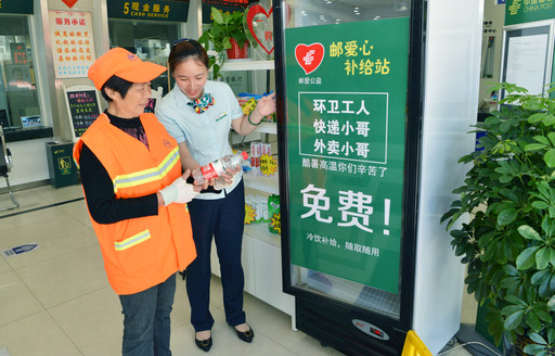 奔牛支局內設有“郵愛心補給站”,免費為戶外工作者提供飲用水等解暑用品,用心擦亮郵政品牌。