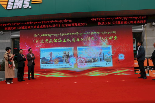在首發(fā)儀式上,四川省分公司集郵與文化傳媒部副總經(jīng)理馮英為《川藏青藏公路建成通車(chē)六十五周年》紀(jì)念郵票隆重揭幕,集郵迷們期待已久的首發(fā)郵票正式揭開(kāi)面紗。