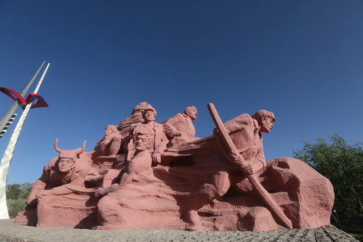 青海省格爾木市將軍樓公園里的筑路大軍雕塑。□蔡謨祥 攝