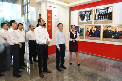 集團公司領(lǐng)導(dǎo)與“時代楷模”、全國道德模范其美多吉一同觀展。記者 朱正義 攝