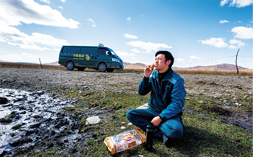 投遞路途遙遠,交通條件差,每次出班,哈弄奪機都會帶上面包等食品補充體力。