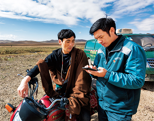 藏區的很多牧民不會用手機網購。每次,牧民只要看到哈弄奪機的郵車來了,就讓他幫忙下單。
