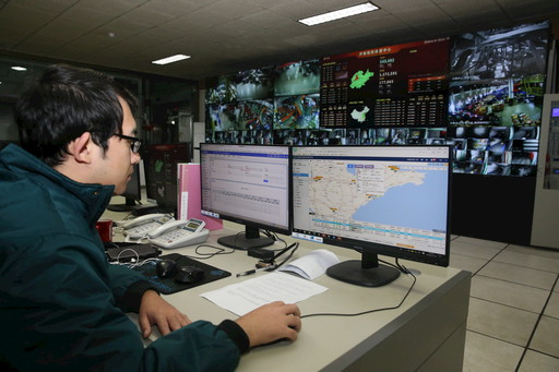 11月11日零點15分,山東省濟南郵區中心局值班調度員通過車管平臺系統關注在途車輛運行情況,確保“雙11”期間車輛銜接暢通。 □記者 崔鵬森 通訊員 劉克義 攝影報道