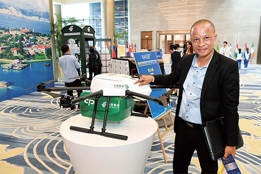 現場展示的郵政無人機和無人投遞車。