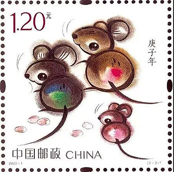 庚子鼠年生肖郵票第一圖名為“子鼠開天”,取自民間傳說“鼠咬天開”,萌動(dòng)之鼠騰空躍起,咬破混沌,遂成宇宙,寓意國家取得了開天辟地、繼往開來的巨大成就;第二圖為“鼠兆豐年”,三只小鼠一副歡喜自得模樣,寓意闔家歡樂,花生圖案一派豐收景象,寓意2020年五谷豐登、闔家歡樂。畫面運(yùn)用裝飾小寫意的畫法,結(jié)合傳統(tǒng)國畫的渲染技藝,展現(xiàn)了生肖鼠的可愛萌動(dòng),預(yù)示著偉大祖國的繁榮富強(qiáng)。