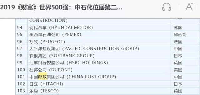 躋身世界500強,2019年排名《財富》榜第101位