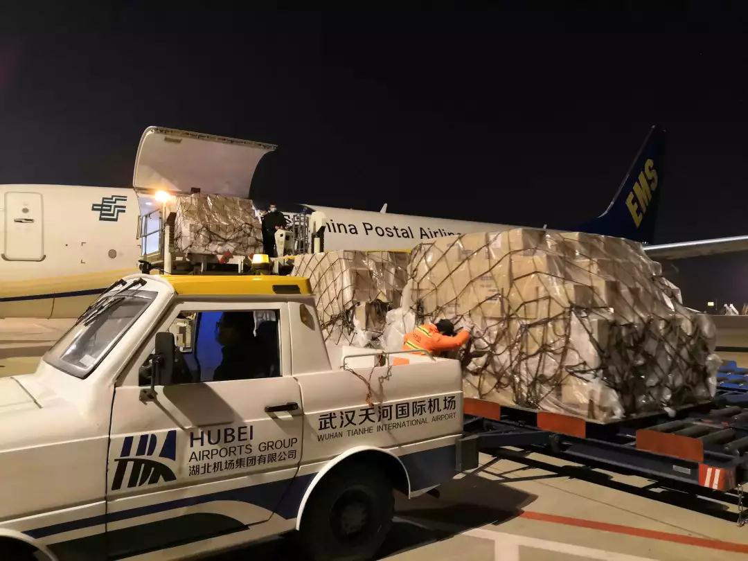 21時18分,郵航CF9117航班在武漢天河機場降落后,郵航武漢辦事處人員和天河機場地面保障人員立即展開卸機作業(yè),全部作業(yè)流程順暢有序,僅歷時20分鐘。一場緊張忙碌的作業(yè)后,這批物資已迅速運往需求方處。