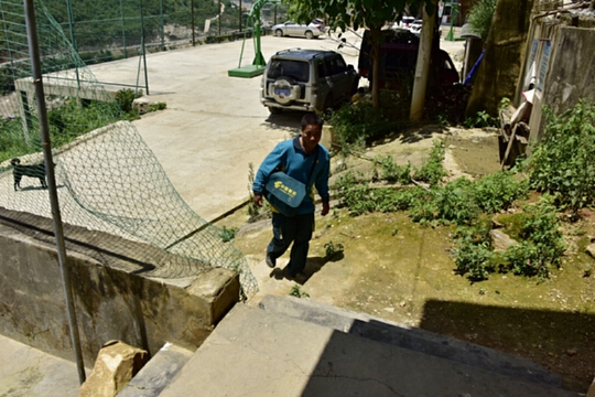 簡單吃過中飯,桑南才將郵袋綁在摩托車后座上,彎腰緊了緊鞋帶,再跨上磨得泛白的帆布郵包,驅車向大山深處進發。