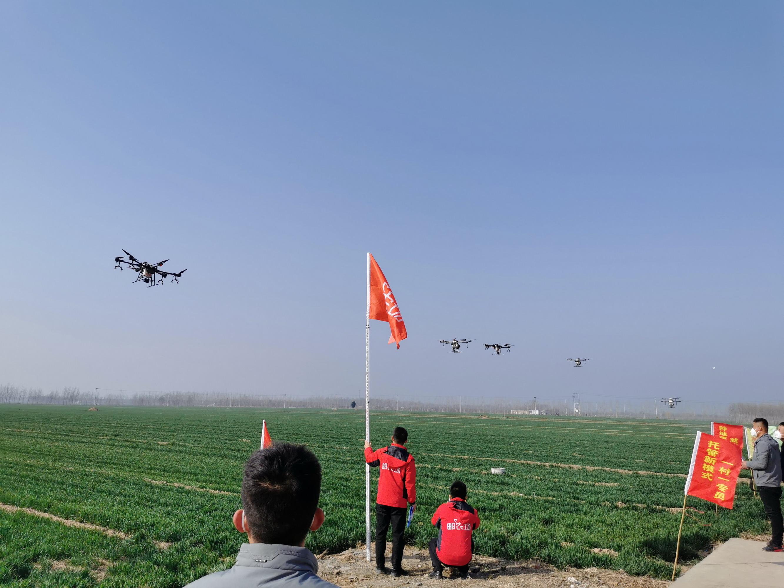 3月11日上午,山東聊城郵政在冠縣定遠(yuǎn)寨鎮(zhèn)舉行“戰(zhàn)疫情保春耕 郵農(nóng)場(chǎng)在行動(dòng)”暨植保無人機(jī)飛防啟動(dòng)儀式。現(xiàn)場(chǎng),11架無人機(jī)同時(shí)升空,展示了高效的飛防作業(yè)。