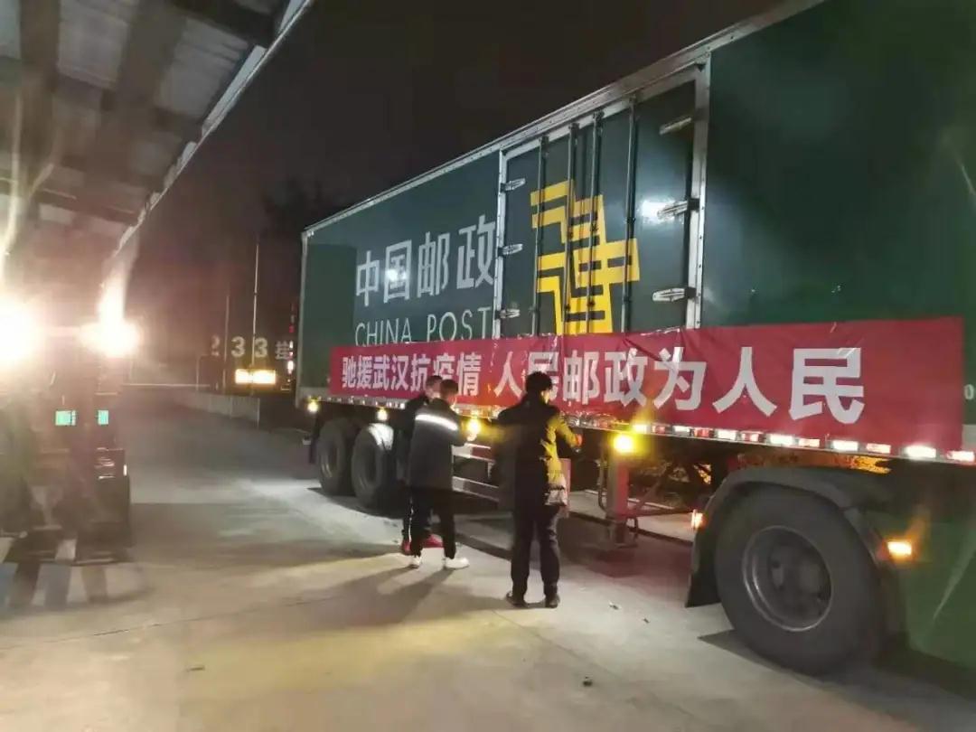 來自全國各地的各類物資,不分晝夜地被郵政運輸車送進疫區。