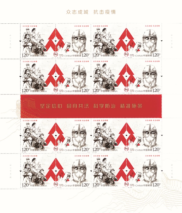 在印制工藝上,郵票還首次采用了“心形”異形齒孔,強化萬眾一心、抗擊疫情的寓意,也表達了前方后方心連心、共同抗疫的堅定信念。該套郵票由王虎鳴、劉向平設(shè)計,北京郵票廠影寫版工藝印制。
