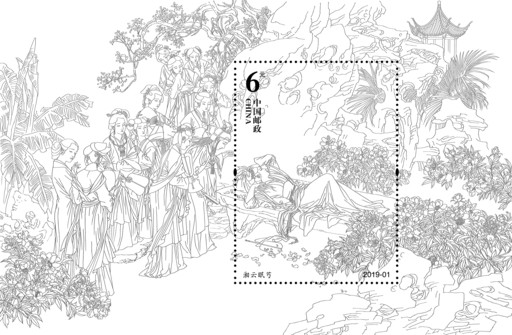 《中國(guó)古典文學(xué)名著——〈紅樓夢(mèng)〉(四)》郵票小型張線描稿。
