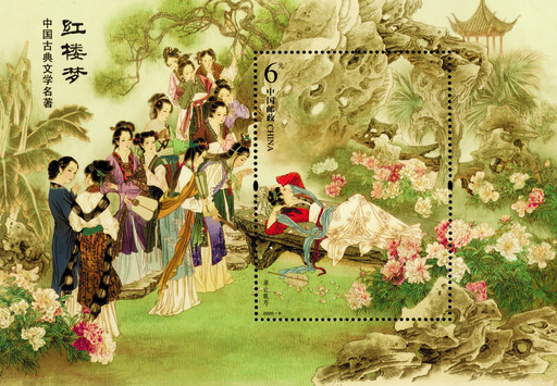 5月17日發(fā)行的《中國(guó)古典文學(xué)名著——〈紅樓夢(mèng)〉(四)》特種郵票,4枚郵票內(nèi)容分別為“鴛鴦抗婚”“寶琴立雪”“三姐還劍”“惑讒抄園”,小型張為“湘云眠芍”。由設(shè)計(jì)了該系列郵票第二組、第三組的著名工筆畫家蕭玉田繼續(xù)擔(dān)綱設(shè)計(jì)。