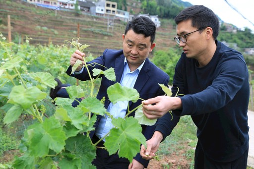 郵儲銀行貴州省畢節(jié)市分行今年協(xié)同畢節(jié)市郵政分公司,全力加強市級及以上專業(yè)合作社、家庭農(nóng)場走訪,以惠農(nóng)項目為抓手,助力決勝脫貧攻堅。截至4月底,該分行已發(fā)放金融精準扶貧貸款近1.8億元,其中發(fā)放個人精準扶貧貸款1400多萬元,直接支持建檔立卡貧困戶175戶。圖為郵儲銀行畢節(jié)市七星關區(qū)支行負責人(左一)走訪專業(yè)合作社查看葡萄長勢。 □蘇勇 攝影報道