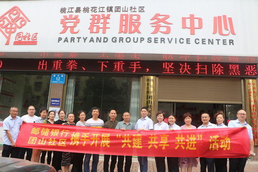 5月18日,郵儲銀行湖南省益陽市桃江縣支行黨支部聯合桃江縣桃花江鎮團山社區黨總支開展了“共建共享共進”主題活動。活動中,桃江縣支行黨支部向團山社區閱覽室贈送了黨建書籍,又在社區工作人員的帶領下對周邊企業進行了走訪,了解企業的金融服務需求。未來,雙方將通過合作共建、資源共享、優勢互補,來實現共同發展。 □趙欣 王柯予 攝影報道