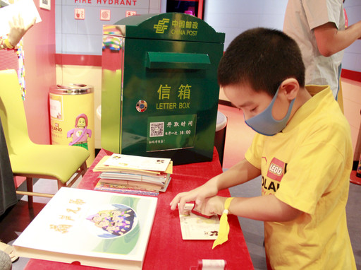 6月1日,北京郵政攜手北京樂高探索中心舉辦《動畫—葫蘆兄弟》特種郵票首發儀式。在互動環節,到場的小朋友們在樂高專業人士的指導下完成了樂高小葫蘆作品。在北京郵政專門設置的郵品展臺上,葫蘆兄弟立體郵票書、四大名著郵票冊、明信片及豐富多彩的文創產品吸引了小朋友的目光,他們紛紛在明信片上加蓋紀念郵戳?!跤浾?nbsp; 楊光 攝影報道