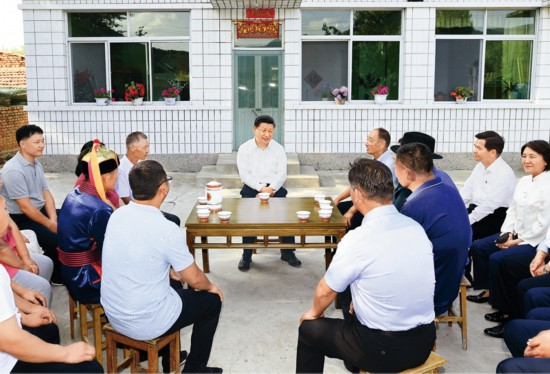 2019年7月15日至16日,中共中央總書(shū)記、國(guó)家主席、中央軍委主席習(xí)近平在內(nèi)蒙古考察并指導(dǎo)開(kāi)展“不忘初心、牢記使命”主題教育。這是15日下午,習(xí)近平在赤峰市喀喇沁旗河南街道馬鞍山村村民張國(guó)利家,同基層干部群眾代表座談交流。 新華社記者 謝環(huán)馳/攝