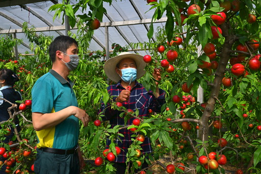 6月,正是江蘇省徐州市油桃豐收的季節。豐縣王溝鎮兆豐家庭農場的李巧云正在大棚里忙碌著,摘桃、剪葉、包裝……“郵政現在服務太全面了,家門口就能發快遞,現在也能貸款了,還可以幫我們設計油桃包裝、開通直播,在線上銷售呢。”李巧云一邊摘桃,一邊開心地說。