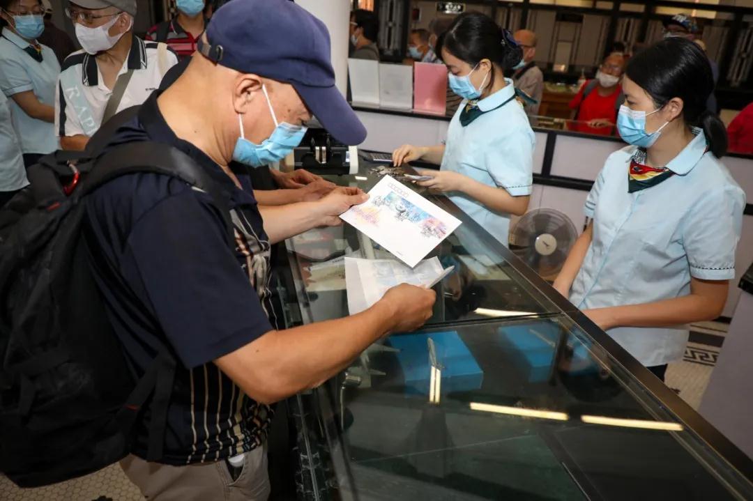 活動現場,郵票設計師韓秉華為廣大上海郵迷簽名留念,上海郵政提供郵品銷售、加蓋紀念戳等郵政服務。中國郵政集團有限公司郵政業務部總經理王志奇、上海市浦東新區區委宣傳部部長唐勁松出席本次活動,并共同為郵票首日封揭幕。