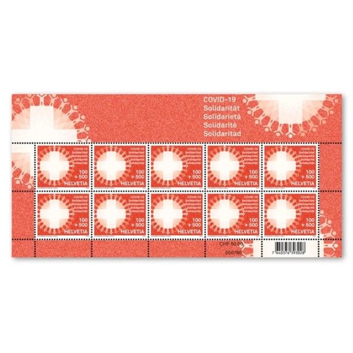 瑞士郵政抗擊疫情附捐郵票。