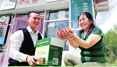 共和縣郵政電商服務中心員工上門為村民打包、郵寄農特產品。
