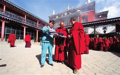 玉樹藏族自治州分公司投遞員黃修云深入寺院熱情服務,受到僧人稱贊。