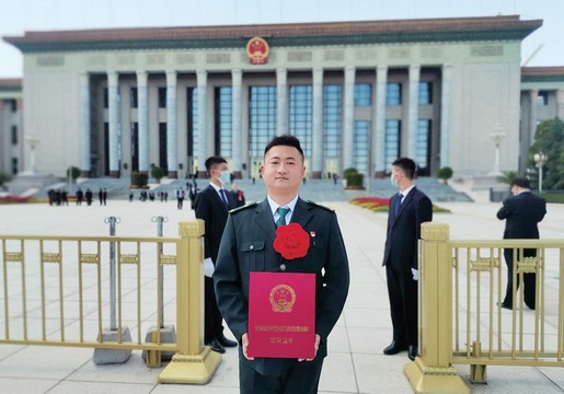 徐龍手捧證書在人民大會堂前留念。