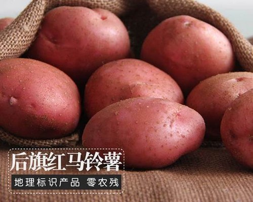 “后旗紅”土豆是馬鈴薯的一個品種,因種植在中國薯都烏蘭察布察右后旗而得名。“后旗紅”馬鈴薯種植基地位于察哈爾火山地質公園火山群下,北緯41度。采用微噴方式,水源來自150米火山巖下深層礦泉水。其產地烏蘭察布察哈爾右翼后旗,地屬溫帶大陸性季風氣候,無霜期短、晝夜溫差大,降雨集中在馬鈴薯生長期季節(jié),雨熱同季,土壤為沙性土,為馬鈴薯生長提供了得天獨厚的優(yōu)越條件。