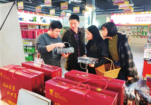 近日,湖南郵政首個線下消費扶貧館在益陽市開館。該消費扶貧館是由益陽市扶貧辦公室與市郵政分公司聯手打造的消費扶貧農產品體驗中心。目前,入駐商家已經達到872家,優質單品達到3000余種,包括全省眾多名特產品。同時,消費扶貧館還通過網絡直播的方式,實現線上與線下互動,促進扶貧產品銷售。圖為客戶在消費扶貧館挑選產品。