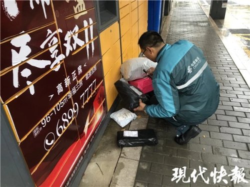 當(dāng)天早上7點(diǎn),天氣寒冷,空中飄著淅淅瀝瀝的小雨。現(xiàn)代快報(bào)記者來到鹽城市大學(xué)城營投部,只見十幾個(gè)快遞員正在熱火朝天地分發(fā)快遞。