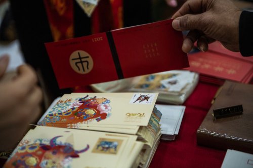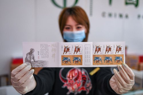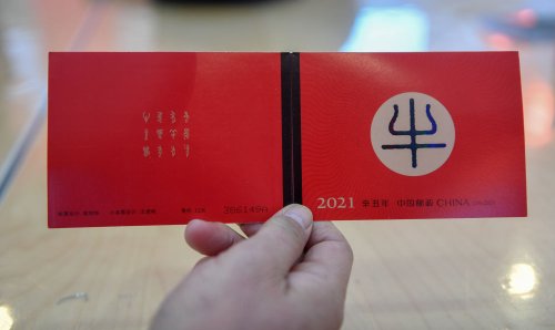 1月5日在長春拍攝的《辛丑年》特種郵票。新華社記者 張楠攝