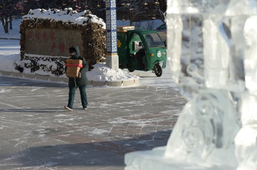 內(nèi)蒙古自治區(qū)興安盟阿爾山市的冬天寒氣逼人,近日的最高氣溫約為零下30攝氏度。49歲的韓金花一早就穿戴好防寒衣物,冒著嚴寒騎著三輪車出門投遞、攬件。韓金花是阿爾山市郵政分公司寄遞事業(yè)部投遞員,她從事郵遞工作已有10多年。