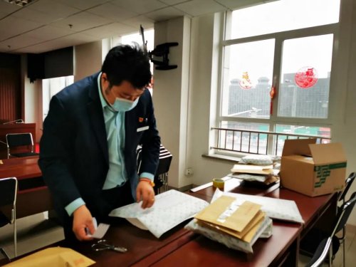 按照分工,柴閃閃負責代表團內的服務工作,陳蘭穎負責和代表團以及駐地溝通,在符合代表團規定和疫情防控要求的前提下提供郵政服務。3月6日中午時分,柴閃閃急匆匆地扒拉了兩口飯,就回到房間,一張張地將有需求的代表和工作人員填好的、由陳蘭穎特別制作的兩會服務單拍照回傳給她。東四郵局內,隨著手機上微信信息不斷響起,陳蘭穎帶著工作人員仔細對照服務單,給代表和工作人員分裝郵件。陳蘭穎說:“我的手機24小時開機,有不清楚的問題,無論是閃閃還是其他代表可以隨時找我。”晚上7點,經過嚴格消毒處理的郵件被東四郵局的工作人員送到代表團駐地,以“無接觸”的形式由工作人員領走。