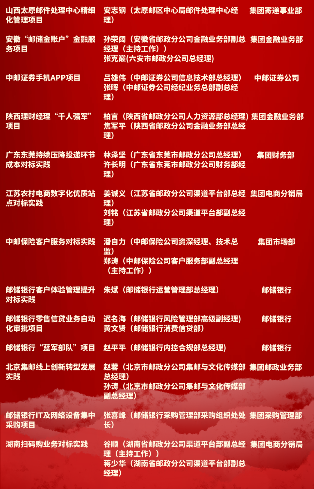 會(huì)議明確了2021年勞動(dòng)競(jìng)賽項(xiàng)目?jī)?nèi)容和要求。2021年,集團(tuán)公司勞動(dòng)競(jìng)賽將堅(jiān)持問(wèn)題導(dǎo)向、目標(biāo)導(dǎo)向的競(jìng)賽原則,緊密?chē)@打造“六維共生”的新郵政發(fā)展格局,堅(jiān)持以改革創(chuàng)新為動(dòng)力,以推動(dòng)中國(guó)郵政高質(zhì)量發(fā)展為主線,聚焦集團(tuán)公司年度工作會(huì)議確定的發(fā)展目標(biāo)、重點(diǎn)工作和重點(diǎn)項(xiàng)目,針對(duì)各項(xiàng)業(yè)務(wù)的發(fā)展重點(diǎn)、難點(diǎn)及薄弱環(huán)節(jié),共確定競(jìng)賽項(xiàng)目17個(gè),包括16個(gè)業(yè)務(wù)競(jìng)賽項(xiàng)目和“對(duì)標(biāo)先進(jìn)最佳實(shí)踐獎(jiǎng)”綜合性項(xiàng)目。