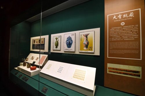 展覽現場,共展出郵票56套1732枚(含故宮主題郵票52套1590枚)、郵票手稿等珍貴展品54件、聯合發行首日封13件;配合郵票展出的25件故宮文物,涵蓋書畫、玉器、琺瑯器、青銅器、瓷器、家具等多個門類,與同主題的郵票交相輝映。