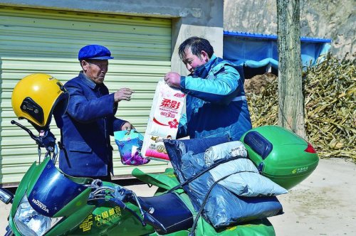 在趙滿明的摩托車上,經(jīng)常會出現(xiàn)與工作“不相符”的物品,有時是衛(wèi)生紙等生活用品,有時是瓜果蔬菜,這都是他幫投遞區(qū)域內(nèi)生活不便的群眾代買的物品。“我每天都來往在鎮(zhèn)上,幫他們代買一些生活用品,都是舉手之勞。”趙滿明輕描淡寫地說。